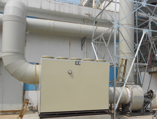 吸附净化装置:分进风段、碳纤维过滤段和出风段、过滤段由几个到几十个过滤筒组成,过滤层厚度为50-100mm,有机废气从进风段进入箱体,经由纤维毡过滤筒层层吸附净化,净化后的空气由通风机排入大气。 本产品用于喷漆工艺含苯系物质的净化,其净化效率达97-99%,净化后空气中含苯浓度为0.068mg/Nm3。甲苯浓度为7.48mg/Nm3。